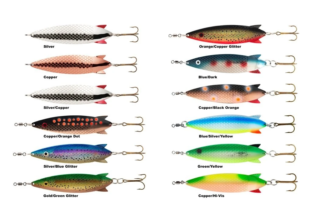 Dieser Blinker ist die ultimative Köder zum Lachsfang in Flüssen und Meer. Der Lachsblinker ist in 12 fängigen Farben verfügbar und hat ein Gewicht von 30g.