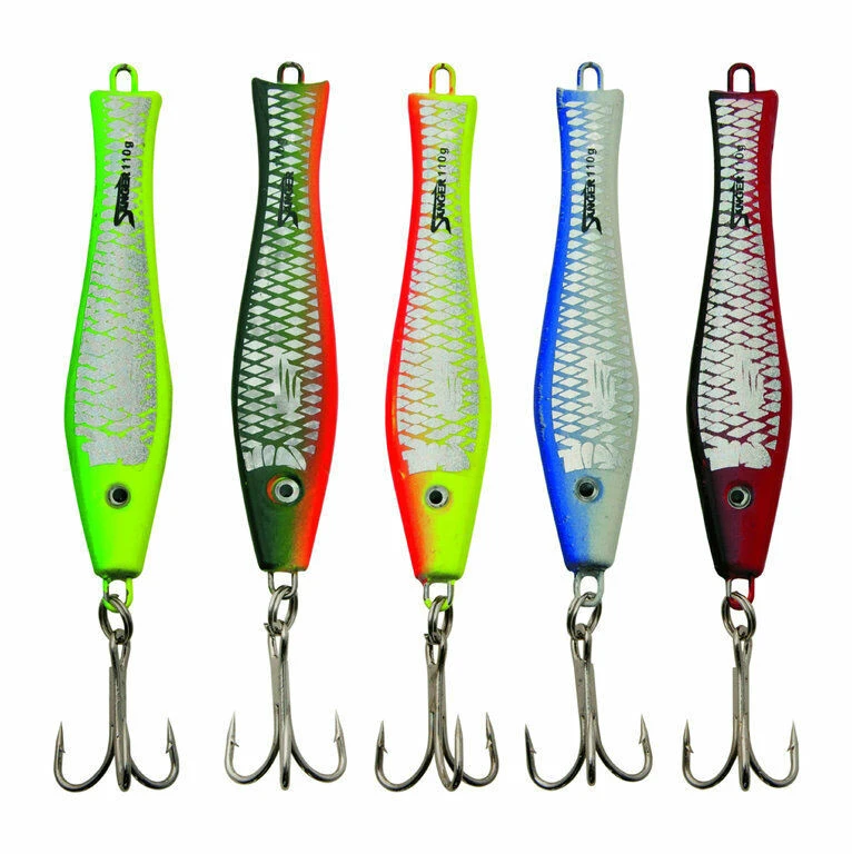 Verfügbar in verschiedenen Größen von 30g bis 500g. Hochwertige Pilker mit holografischer Folie.
