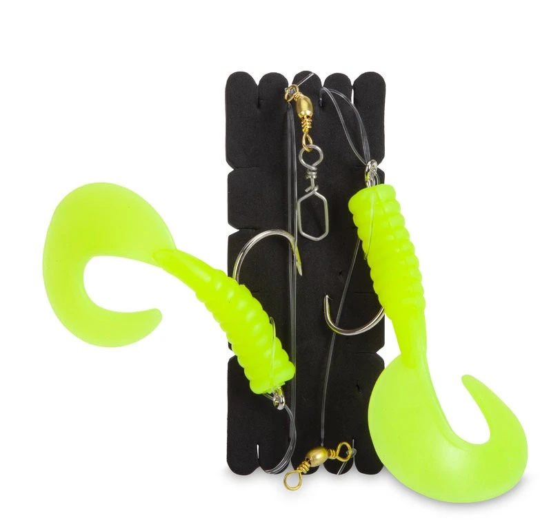 Dieses Großtwister-Vorfach ist mit Haken der Größe 4/0 ausgestattet. Die Schnurstärke hat einen Durchmesser von 0,80 mm. Weiter hat das Vorfach einen Meereswirbel der Sorte „Extra Strong“ und ist 115cm lang. Das Rig ist in fünf Farben verfügbar und ideal für Dorsch, Pollack und Seelachs.
