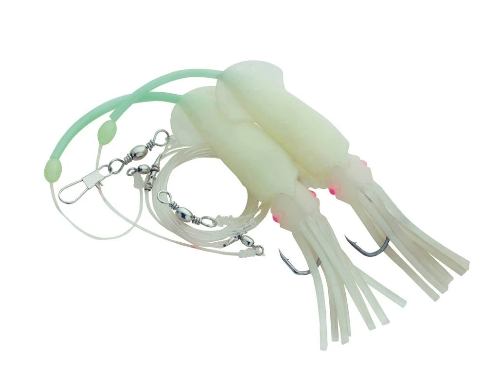 Vorfach mit zwei Flügeloctopussen mit Seitenflügeln und Augen.