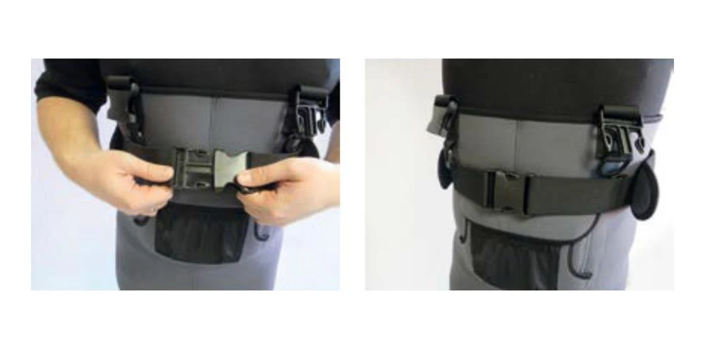 Tipp: Diese Wathose kann auch als Bauchmodell getragen werden. Die Verschlüsse des Schultergurts sind seitenverkehrt angebracht, damit die Träger auch als Gürtel für den Einsatz als Bauchmodell verwendet werden können.