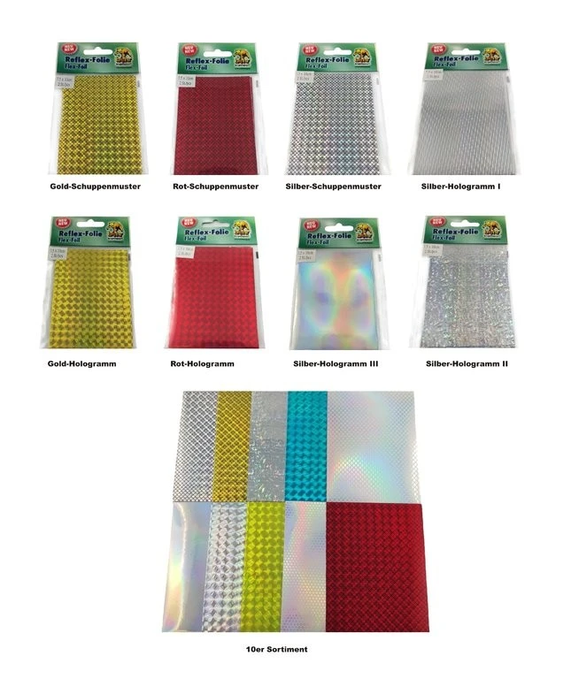 Mit dieser Folie lassen sich alle Art von Kunstködern bekleben. Die Folie ist von höchster Qualität und lässt sich somit sehr gut abziehen und verarbeiten. Die Verpackung enthält zwei Streifen in der Größe 7,5 x 10 cm. Verfügbar ist die Reflex-Folie in 8 verschiedenen Farben, sowie einem MULTI COLOR SET mit 10 Streifen, einschließlich der Farbe Silbermotion. Die Produktabbildungen der 3D Hologramm-Farben lassen sich fotorealistisch nicht 100%-ig wiedergeben.