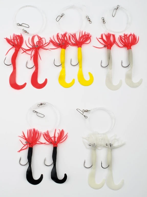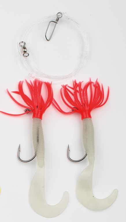 Dieses fängige und von Experten als sehr gut beurteilte Jigsystem gibt es in 5 verschiedenen Farben. Bei einer Vorfachlänge von 120cm und einer Schnurstärke von 0,70mm ist dieses Jigsystem hervorragend geeignet für die meisten Meeresfische. Neben dem altbekannten Twisterschwanz üben die Tentakeln dieses Jigsystems einen zusätzlichen Reiz auf die Fische aus. Alle fängigen Farben sind bei diesem Jigsystem verfügbar.