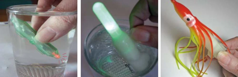 Es hat einen Schnurführungskanal und kann somit einfach auf die Angelschnur aufgefädelt werden. Es stehen mehrere Farbkombinationen zur Auswahl. Die Leuchtzeit, (bei ständigen Blinken) beträgt bis zu 100 Stunden. Der Leuchtradius, je nach Wassertiefe, beträgt bis zu 25 m. Wir fischten hauptsächlich in Wassertiefen bis zu 50 m.