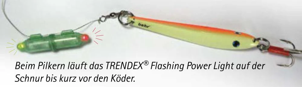 Die Flashing Power Lights sorgen für deutlich mehr Fangerfolg. Das neue TRENDEX®-FLASHING POWER LIGHT verleiht jedem Köder einen zusätzlichen, unwiderstehlichen Reizeffekt. Das Behr-Experten Team war mit diesem Top-Produkt in unterschiedlichen Gewässern zum Testen unterwegs. Überall waren die Fangergebnisse überdurchschnittlich höher als ohne „Flashing Power Light“.