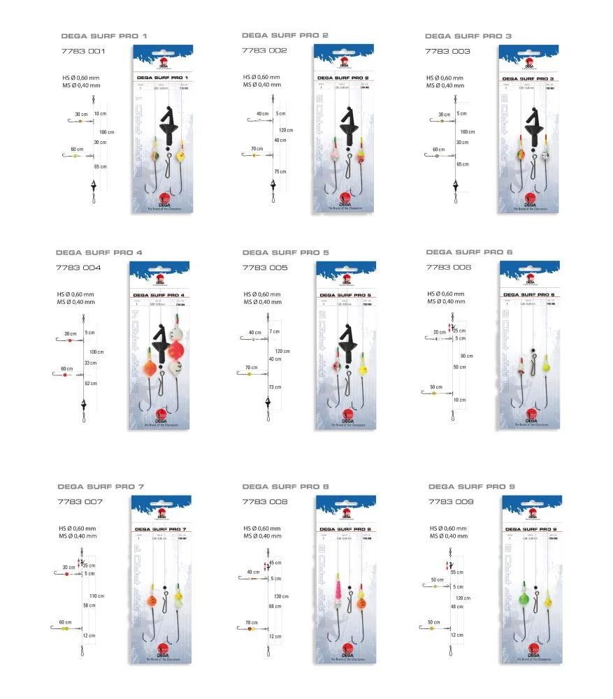 Diese Premiumvorfächer sind alle handgebunden und mit hochwertigen Komponenten versehen. Aus der Praxis – für die Praxis: für die schönsten Stunden am Meer. Mit diesen Brandungsvorfächern ist der Erfolg vorprogrammiert. Alle Systeme sind an transparent-grauem bzw. klarem Vorfach gebunden.