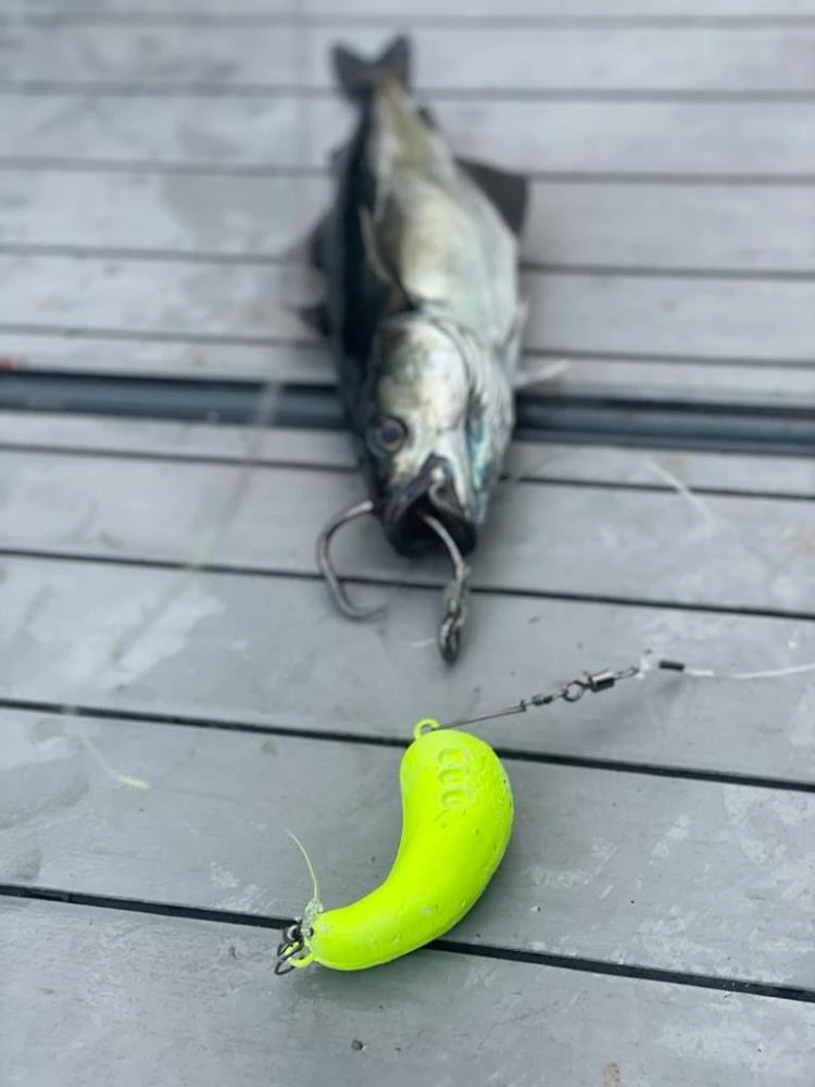 Heilbutt-Fischen mit einem ganzen Köderfisch. Dieses Thema haben Tim und Erik vom Buroysund perfektioniert. Ein einfaches aber sehr fängiges System. Die wichtigste Komponente daran, der Köderfisch. Den müsst Ihr selber fangen! Aber das System haben wir für Euch. 1,20mm extra starke Mono, richtig gebunden mit einem Schlaufenknoten, der den Kreishaken sanft aber sicher in das Heilbuttmaul eindrehen lässt. Die neuen Kreishaken von VMC (exklusiv für Eisele gefertigt) sind Black-Nickel (ohne Lichtreflexe!) in den Heilbuttgrößen XXL 14/0 und 16/0. Die Eisele-Kutscher-Bleie geben dem Köderfisch den Zug nach unten. So präsentieren wir den Köderfisch perfekt in der Drift unseres Bootes. Das Vorfach ist extrem fängig und sicher, das ist sicher.