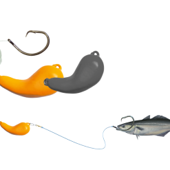 Heilbutt-Fischen mit einem ganzen Köderfisch. Dieses Thema haben Tim und Erik vom Buroysund perfektioniert. Ein einfaches aber sehr fängiges System. Die wichtigste Komponente daran, der Köderfisch. Den müsst Ihr selber fangen! Aber das System haben wir für Euch. 1,20mm extra starke Mono, richtig gebunden mit einem Schlaufenknoten, der den Kreishaken sanft aber sicher in das Heilbuttmaul eindrehen lässt. Die neuen Kreishaken von VMC (exklusiv für Eisele gefertigt) sind Black-Nickel (ohne Lichtreflexe!) in den Heilbuttgrößen XXL 14/0 und 16/0. Die Eisele-Nieren-Bleie geben dem Köderfisch den Zug nach unten. So präsentieren wir den Köderfisch perfekt in der Drift unseres Bootes. Das Vorfach ist extrem fängig und sicher, das ist sicher.