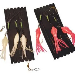 Diese selbstleuchtenden Gummi-Makks besitzen stabile Makk-Haken. Der Leuchtschlauch überzieht diesen gebogenen Haken und ist mit einem Karabiner-Wirbel bestückt. Die Makk sind zweifarbig mit Glitter und einem Leuchtende. Es gibt diese Makks in drei Farben und einen Mix. Die Hakengrößen reichen von 4/0 bis 12/0. In jeder Packung sind 3 gleichfarbige Makks enthalten (außer 12/0 – 2 Stück). Beim Mix ist von jeder Farbe ein Makk enthalten (außer 12/0 – 1x Schwarz + 1x Rot).
