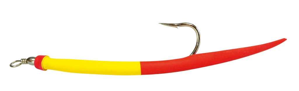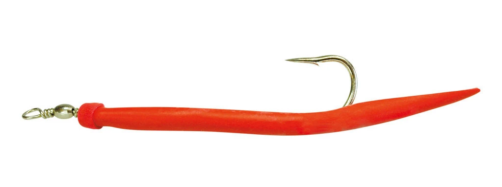 Diese originalen Gummimakks sind mit stabilen Makk-Haken ausgestattet. Der Leuchtschlauch überzieht diesen gebogenen Haken und ist mit einem Karabiner-Wirbel bestückt. Dieser Köder ist eine perfekte Sandaal-Imitation. Es gibt sechs verschiedene, fängige Farben, die in den Größen 6/0, 8/0 und 12/0 verfügbar sind. In jeder Packung sind 3 Stück enthalten.
