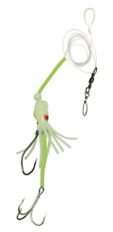 Diese Vorfächer sind für die großen Seehechte entwickelt. Es besitzt eine Anbissstelle, welche aber mit zwei Haken für ganze Köderfische ausgestattet ist. Der Einzelhaken und Drilling haben die Größe 6/0. Im Vergleich zum ebenfalls erhältlichen Leng-System ist das Vorfach dezenter und fürs Freiwasser gebaut, da der Seehecht schneller, agressiver und wilder unterwegs ist. Die hochwertigen Haken sind an einer 1,20mm starken monofilen Schnur befestigt. Weiter besitzt es einen starken Sicherheitswirbel der Größe 3/0 und Leuchtschläuche um das Vorfach vor den scharfen Seehechtzähnen zu schützen. Das Vorfach gibt es in sechs Varianten, welche sich in der Farbe und Form der Oktopusse unterscheiden. Zwei Varianten besitzen 10cm lange B2 Oktopusse in den Farben pink und loom. Zwei weitere haben 10cm B1 Oktopusse ind purple und motoroil und die restlichen beiden 10cm lange Hogy-Oktopusse sind in black oder crab erhältlich.