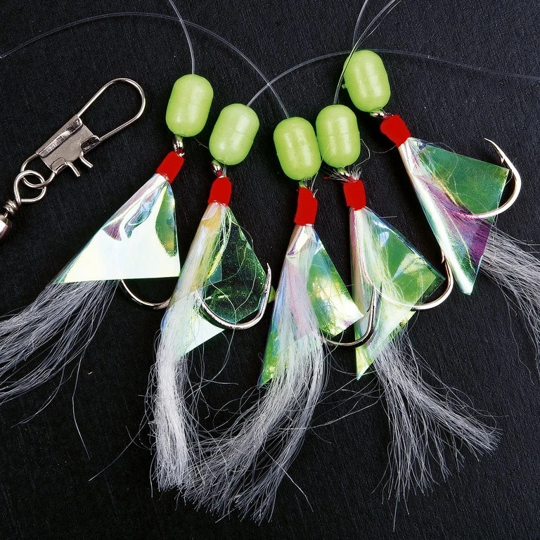 Dieses Vorfach-System besteht aus 3 bzw. 5 Haken der Größe 1/0, 3/0 oder 5/0. Es ist je nach Größe für verschiedene Fische geeignet.