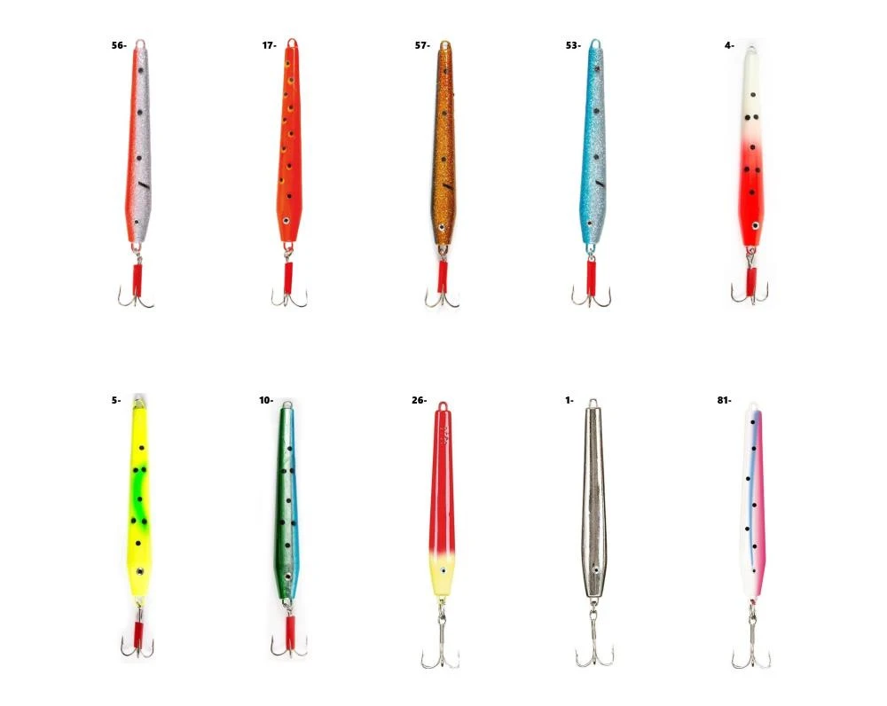 Dies ist eine stabförmiger Pilker mit Verdickung im unteren Bereich. Erhältlich ist der Pilker in zehn fängigen Farben und Gewichten von 300g, 400g und 500g. Der Pilker ist bleifrei und somit umweltfreundlich.