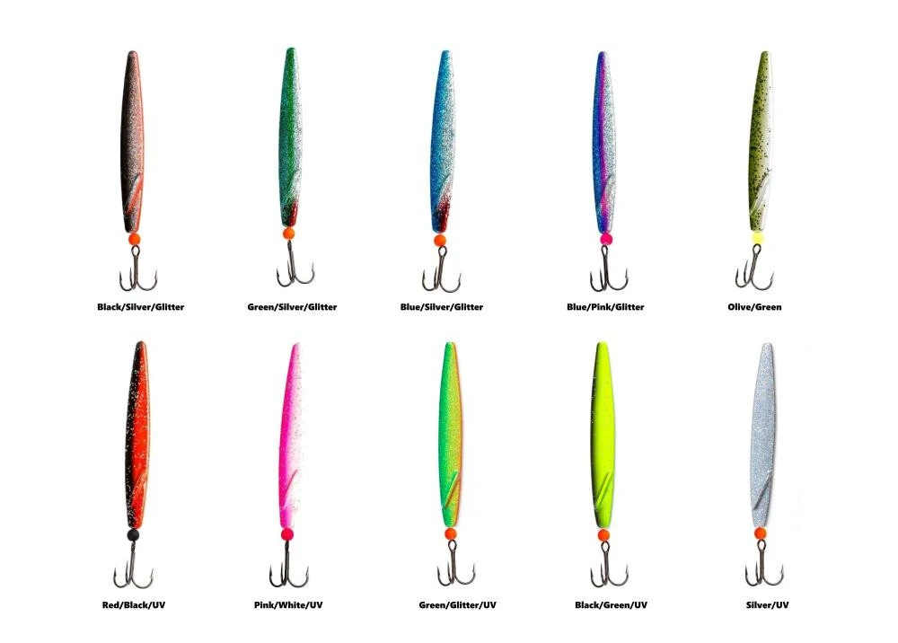 Dieser Inline-Meerforellenblinker zeichnet sich durch seine hervorragenden Laufeigenschaften aus. Er ist auf einer 0,35mm starken Flourocarbonschnur montiert. Eine farbige Perle dient als Stoßfänger des auf der Schnur freilaufenden Blinkers. Durch den freilaufenden Blinker verringert sich die Gefahr, dass der Fisch sich im Drill aushebelt. Dieser Köder ermöglicht weite Würfe. DIZZY TOBIS sind Sandaal-Imitationen und damit perfekt fürs Küstenfischen. Sie erhalten im Set 10 verschiedene Farben und können so auf alle Angelbedingungen reagieren. Sie haben somit immer einen fängigen Köder parat. Mit diesem Set können extrem sparen.