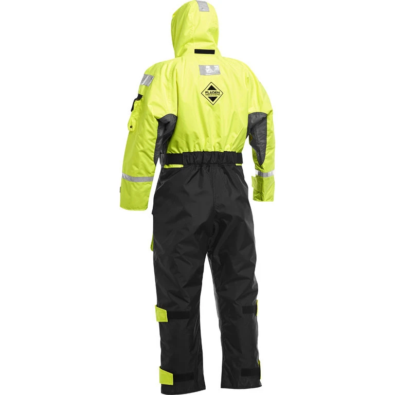 Der FLADEN Einteiler-Schwimmanzug ist nach ISO 15027-1 als Immersion Suit zertifiziert, was bei Zweiteilern nicht möglich ist. Eine der Bedingung dieser Zertifizierung ist es, dass die Körpertemperatur des Träger innerhalb einer Stunde in 5°C kaltem Wasser nicht mehr als 2°C sinkt. Die Tests mit den FLADEN Flotation Suit haben ergeben, dass die Körpertemperatur nur um 1,2C fiel.