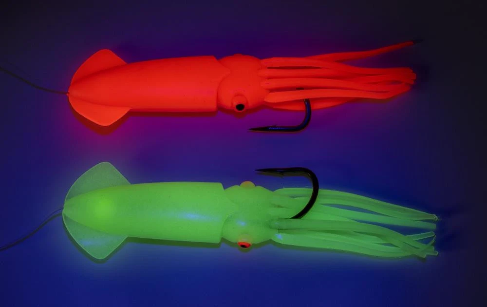 Dieses Rig besteht aus einem selbstleuchtenden Flügeloktopus, welcher an einem Haken der Größe 8/0 montiert ist. Es stehen die Farben Glow und Rot-Glow zur Verfügung.