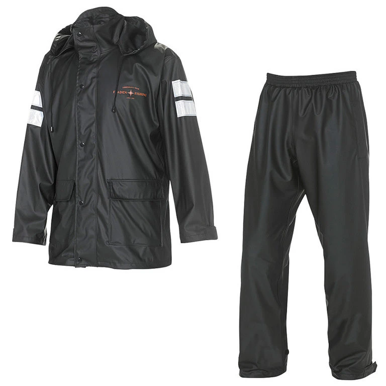 Der Regenanzug (Jacke und Hose) besteht aus 100% PU-Gewebe mit Trikotfutter. Das Material ist flexibel und reißfest sowie wasserdicht. Die Jacke besitzt eine einziehbarer Kapuze und zwei großen Vordertaschen. Zwei Reflektoren auf jedem Ärmel und einer auf dem Rücken sorgen für mehr Sicherheit und Sichtbarkeit im Dunkeln. Eine Belüftung ist auf dem Rücken. Die Hose hat eine elastischer Taille und zwei Seitentaschen. Die Jacke und Hose sind wasserdicht bei einer Wassersäule von 3000 mm. Erhältlich ist der Anzug in den Größen S-XXL. Die Regenjacke und Rgenhose gibt es auch einzeln zu kaufen. Dieses Angebot finden Sie ebenfalls in unserem Shop.
