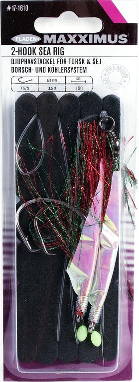 Dieses Premium-Vorfach besteht aus 2 Haken. Es gibt dieses Rig in den Größen 6/0 und 10/0. Hierbei handelt es sich um ein ideales Dorsch- und Köhlersystem.