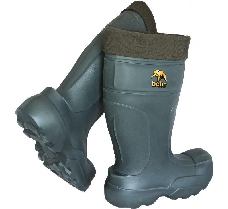 Diese sehr warmen Stiefel haben ein herausnehmbares Innenfutter und sind verfügbar in den Größen 41 – 48. Sie sind aus 100% EVA (Ethylenvinylacetat) hergestellt und dadurch sehr leicht. Dieser Schaumstoff ist isolierend, reiss- und rutschfest und absolut wasserdicht. Das Materiel hat eine hohe Wärmisolierunt und eine sehr gute Alterungsbeständigkeit. Deshalb sind diese Thermostiefel optimal für Angler, Jäger und andere Outdoorfreunde geeignet. Die Wärmeisolierungliegt bei -35°C. Die herausnehmbare Einziehsocke mit Cordstulpe sind aus 100% Polyester hergestellt. Die Schafthöhe des Stiefels liegt bei 43cm.