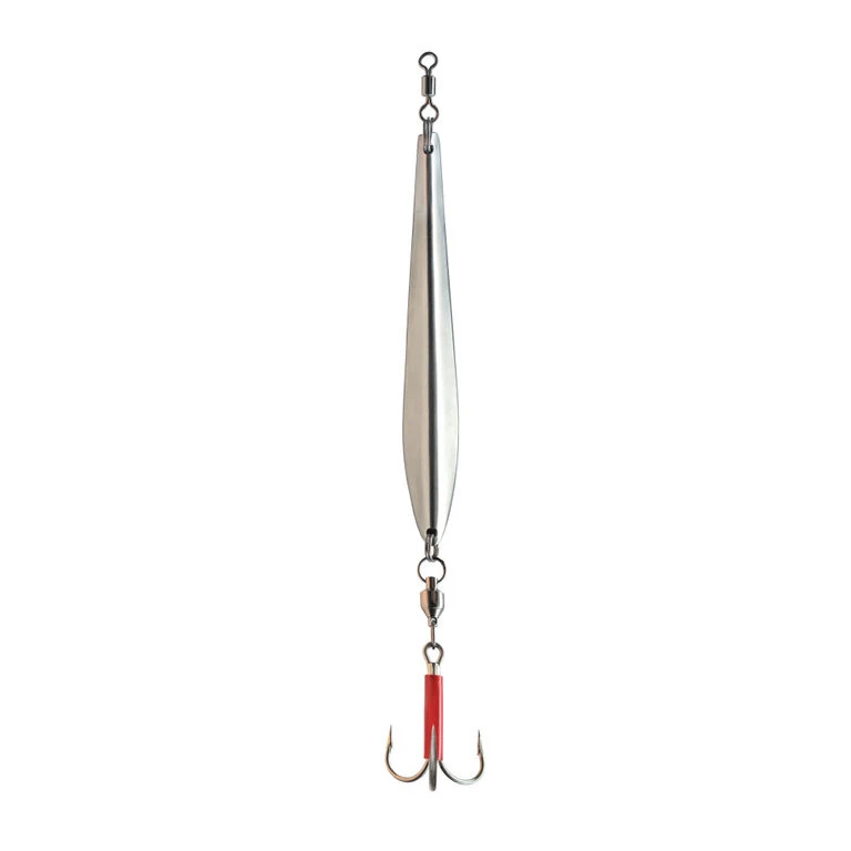 Bei diesem Pilker handelt es sich wohl um den bekanntesten unter den Norwegen-Pilkern. Durch seine einzigartige Wellenform taucht es schnell in große Tiefen ab und übt dort ein spezielle Reizwirkung auf die Großfische aus. Er ist mit superstarken Sprengringen und Mustad Drillingen ausgestattet. Die Gewichte reichen von 50g – 500g.