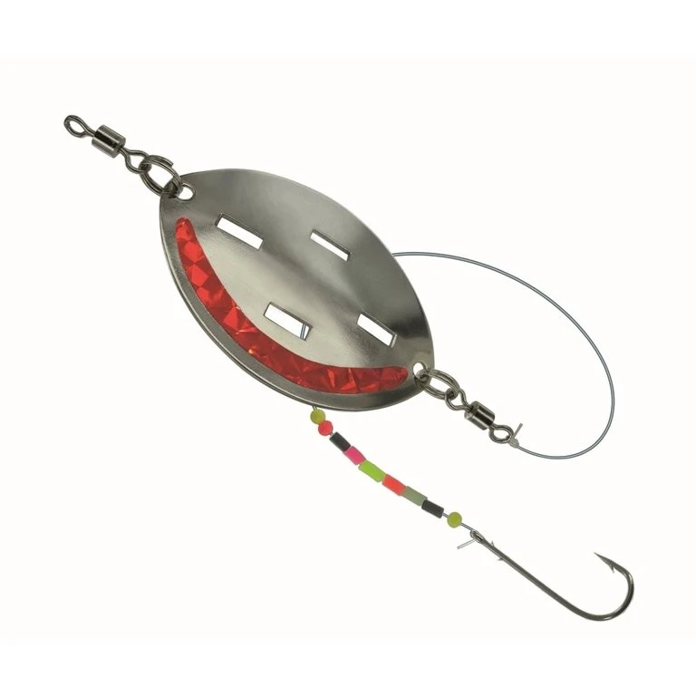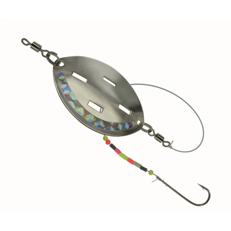 Dies ist ein Locklöffel zum Plattfisch- und Meeresangeln. Am Löffel ist ein komplett fertiges Vorfach (Wirbel, Haken, Schnur sowie Leuchtperlen) bereits montiert. Die unterschiedlichen Farbvarianten sowie die Leuchtperlen erhöhen den Lockreiz auf die Fische. Er wird wie folgt angewendet: Den Löffel absinken lassen – Rutenspitze anheben und 2-3 Rollenumdrehungen einholen und wiederholen. Die dabei entstehende ,Staubwolke“ macht den Fisch neugierig und erzeugt einen Lockreiz. Lieferbar in den Gewichtsklassen 40g und 60g, sowie drei gängigen Farbvarianten. In jeder Packung ist ein Stück enthalten.
