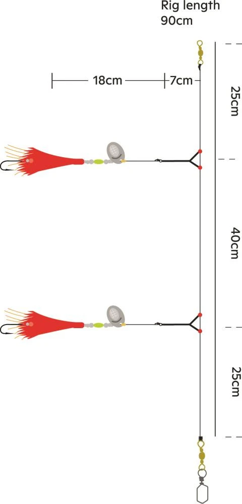 Dieses leichte Boots- und Küstenangel-Vorfach ist mit attraktivem „Mohawk-Haar“ versehen, kombiniert mit Perlen und Spinnerblättern für maximalen Bissreiz. Gedrehte Drahtarme sorgen für Ordnung.