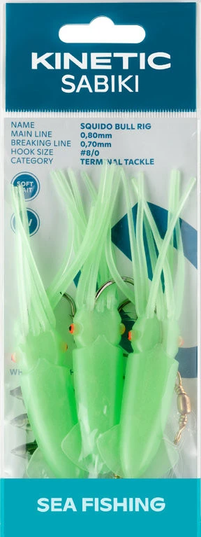 Die Zahl der Tintenfische nimmt rapide zu, und wenn die Fische ihre Ernährung anpassen – da sollten wir das auch tun. Mit Scuido Bull können Sie Tintenfischfresser in allen Größen fangen. Die Länge beträgt 115cm bei einem Durchmesser von 0,80mm (Hauptschnur). Die Haken haben eine Größe von 8/0.