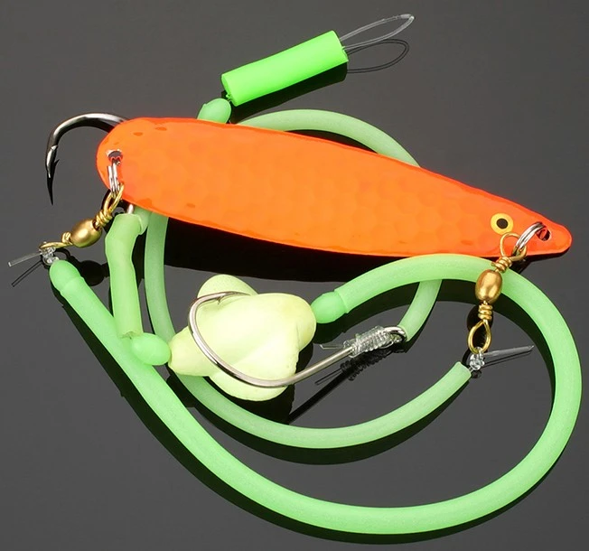 Dies ist die leichtere Version des Leng-Löffel-Systems. Es ist ein vorgefertigtes Rig für das Angeln mit einem Sea Boom. Empfohlen vor allem für das Angeln auf Lumb und Leng mit Fischfilets. Es hat einen 10cm langen, roten Spoon, der die Fische anzieht und sie zum Anbiss verleitet. Das Vorfach ist 75cm lang. Die Hauptschnur besteht aus starker 0,80mm dicken Monofilschnur.