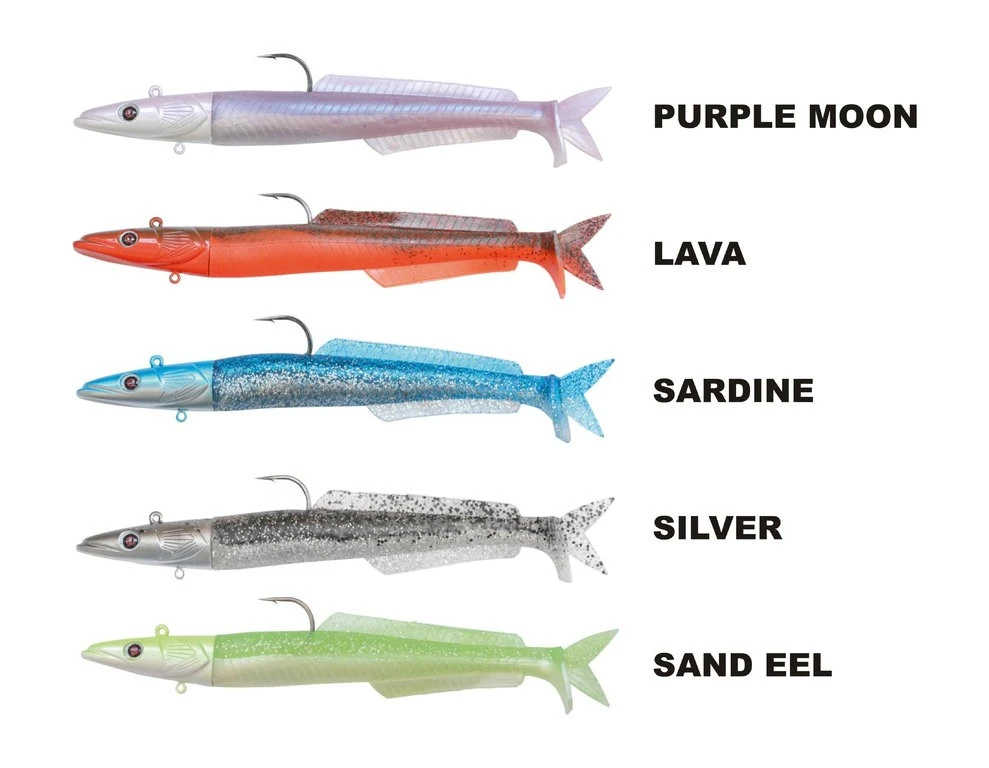 Tolle Sandaal-Imitation in vier Größen und fünf fängigen Farbkombinationen. Sandaale zählen zur Hauptbeute vieler Meeresfische und verfehlen ihre Wirkung nur selten. Geliefert mit einem Kopf mit zwei Schwänzen je Packung.