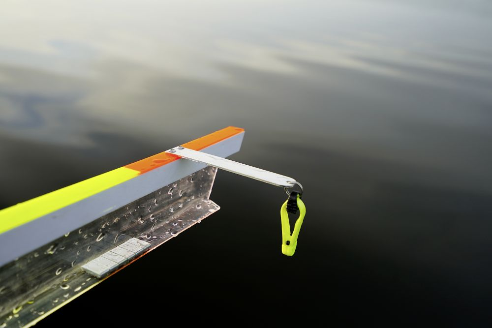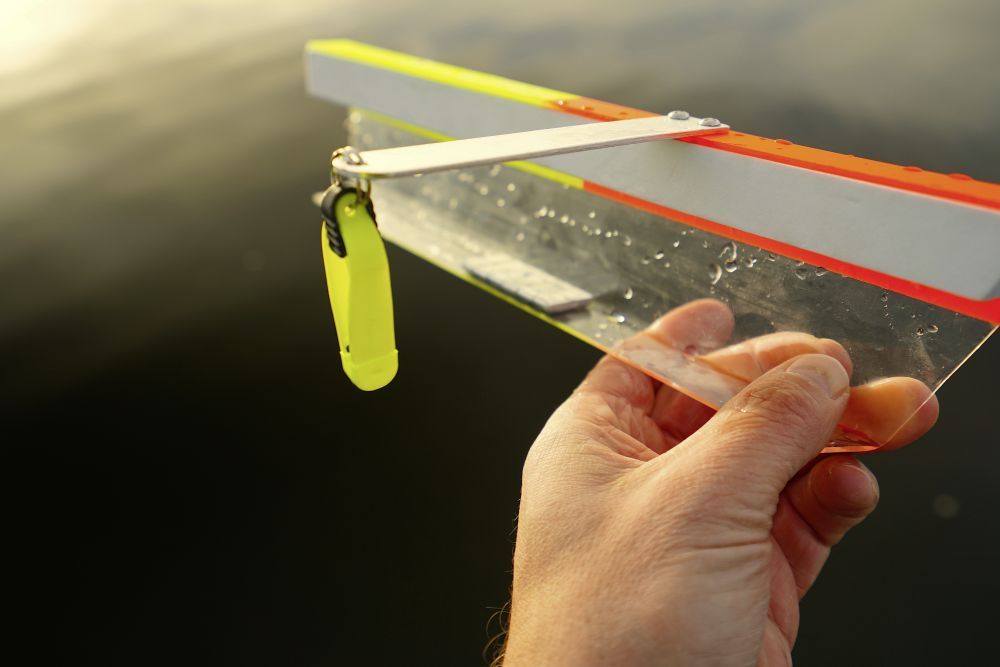Rhino’s neuestes Inline Board – das Flexiboard. Beim Trolling hält es stets Ihre Schleppköder seitlich auf den gewünschten Abstand zum Boot. Das Flexiboard ist ein erstklassiges „Schlechtwetter-Board“, es meistert selbst hohe Wellen spielend und läuft jederzeit stabil an der Wasseroberfläche. Es verträgt außerdem große vorgeschaltete Paravane und ggf. auch Flasher vor dem Köder. In der Benutzung bietet das Flexiboard weitere Vorteile: Zunächst lösen die verbauten, originalen Scotty-Clips im Drill super aus und verringern so den Wasserwiderstand des Boards. Auch geflochtene Schnüre werden bei harter Einstellung sehr gut gehalten. Nach dem Auslösen bleibt das Brett durch den hinteren Rhino-Clip mit dem innenliegenden Pin sicher auf der Schnur fixiert.