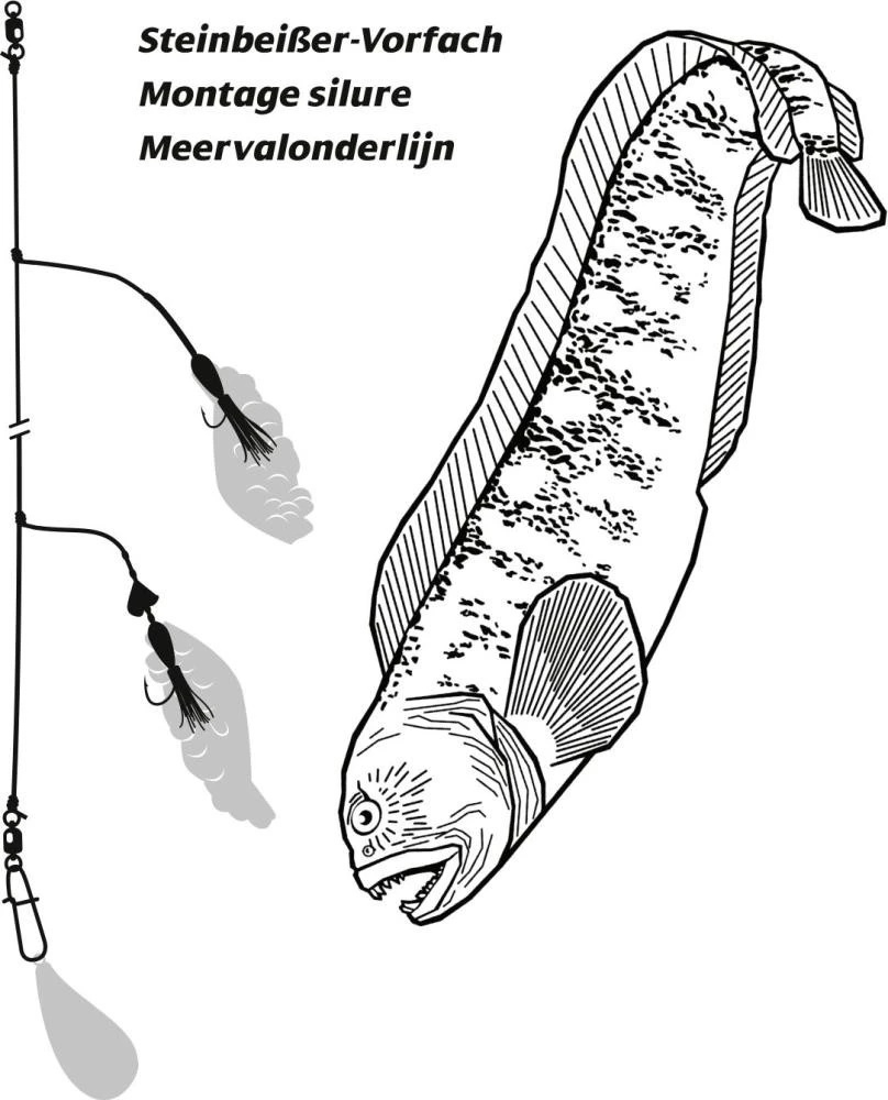 Ein speziell angefertigtes Steinbeisser-Vorfach aus qualitativ hochwertigen Komponenten.