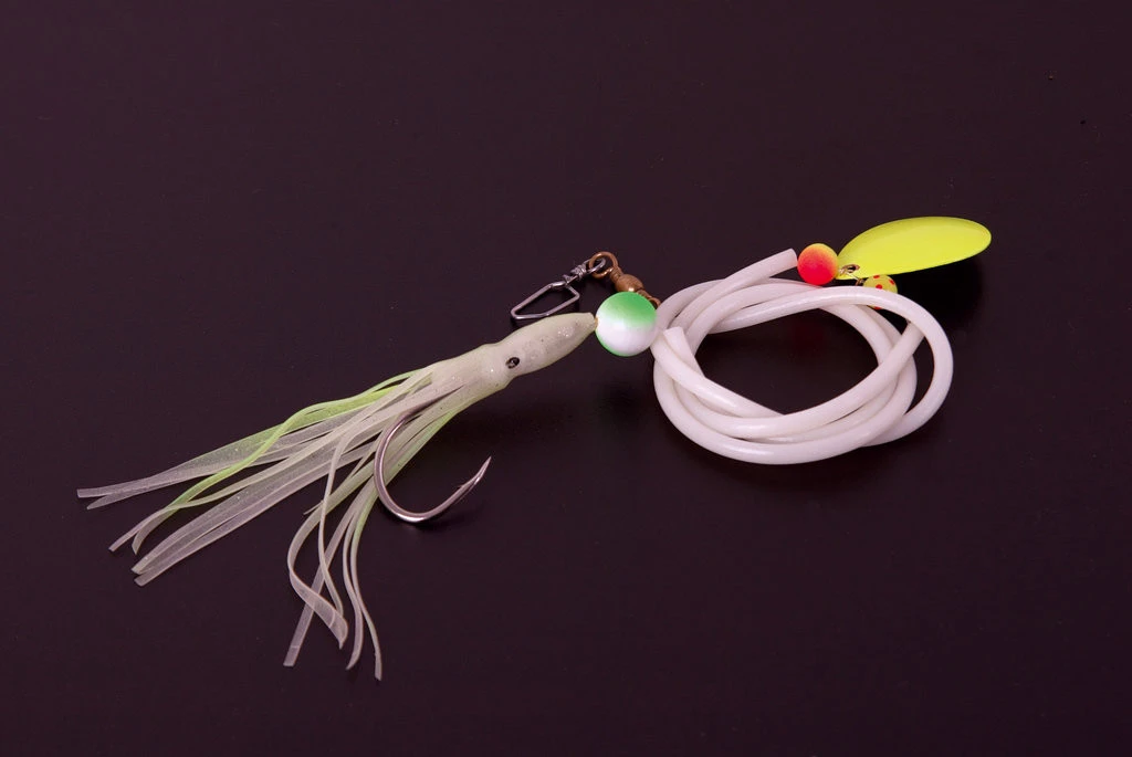 Das Naturköder-Rig wird mit Fischfetzen bestückt. Zusätzlich Reize werden durch den Fluoschlauch und den Locklöffel erzeugt. Den Fetzenköder am Besten mit einem Stück Draht sichern.