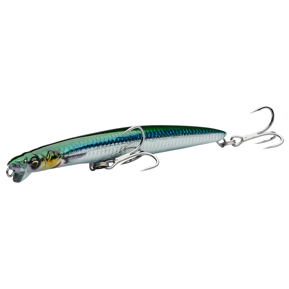 Weitwurf-Pencil mit super realistischem Profil, der auf verschiedene Arten gefischt werden kann, um Attacken von Räubern zu provozieren. Der Köder gleitet und blinkt beim Twitchen aufgrund des „Halblippen“-Designs und fällt mit starken Vibrationen und lautem Rasseln. Perfekt für Amberjacks, Schnapper, Mahi Mahi, Bluefish, Barrakudas und Thunfischarten.