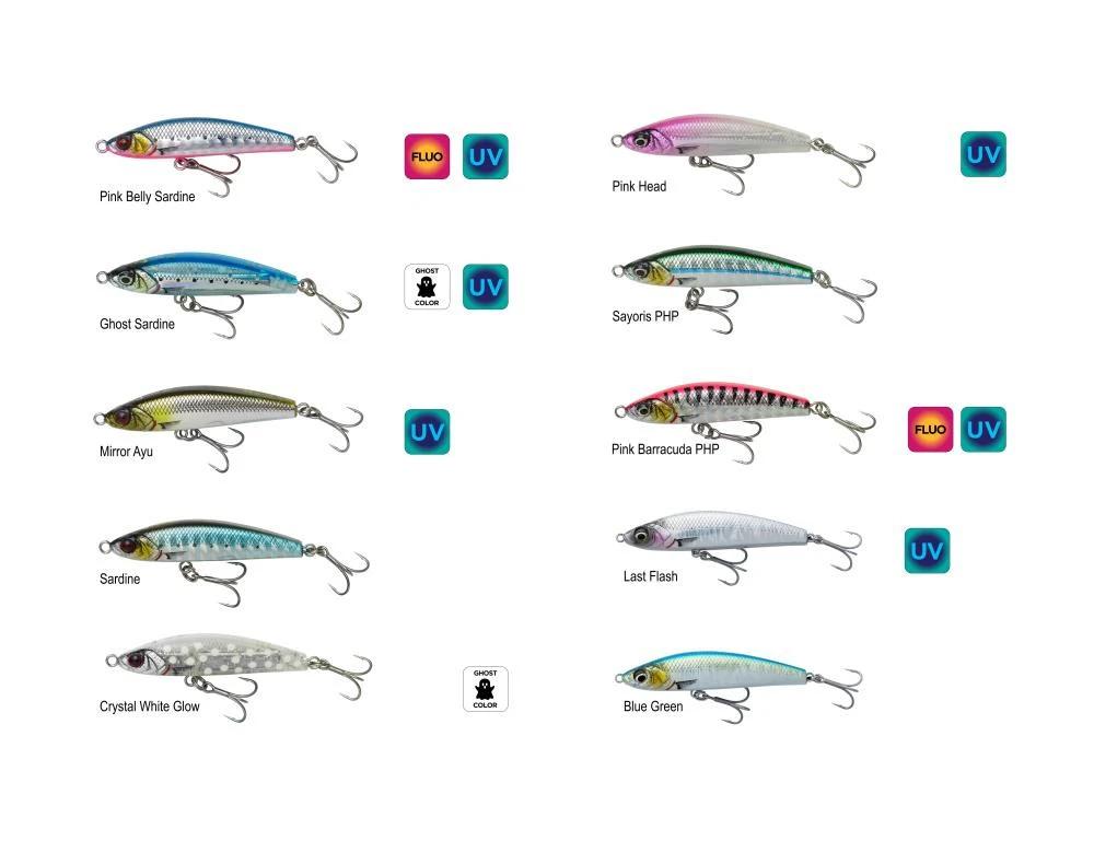 - 4,5cm – 5g | 5cm – 8g | 6cm – 12g | 7cm – 18g | 7,5cm – 25g | 8cm – 33g