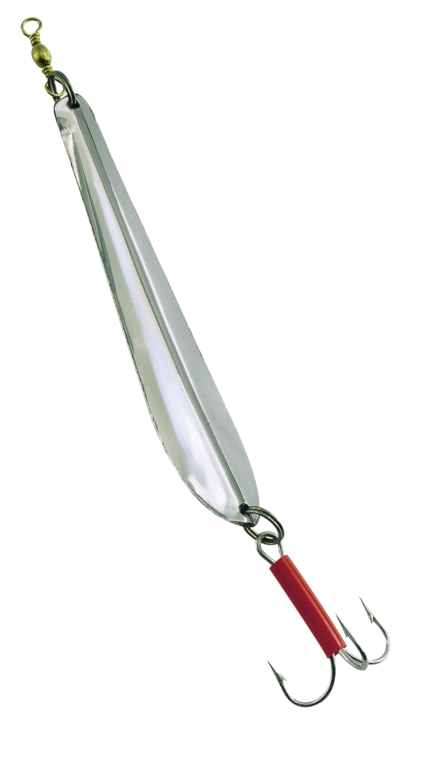 Der Svenskepilk, auch Bergmann-Pilker genannt, ist ein spezieller Taumel-Pilker. Er ist absolut rostfrei und der TopFavorit für große Tiefen, ob in Norwegen, am „Gelben Riff“ oder sonst wo auf den Weltmeeren. Seine spezielle Form lässt ihn in große Tiefen langsam herabtaumeln. Auf seinem Weg in die Tiefe beangelt dieser Pilker einen großen Radius unter dem Boot. So kannder Räuber den Köder bereits Absinken attackieren. Dieses ist in großen Tiefen von Vorteil, damit man nicht nur am Grund, sondern auch im Mittelwasser, wo der Fisch oft jagt, erfolgreich ist.