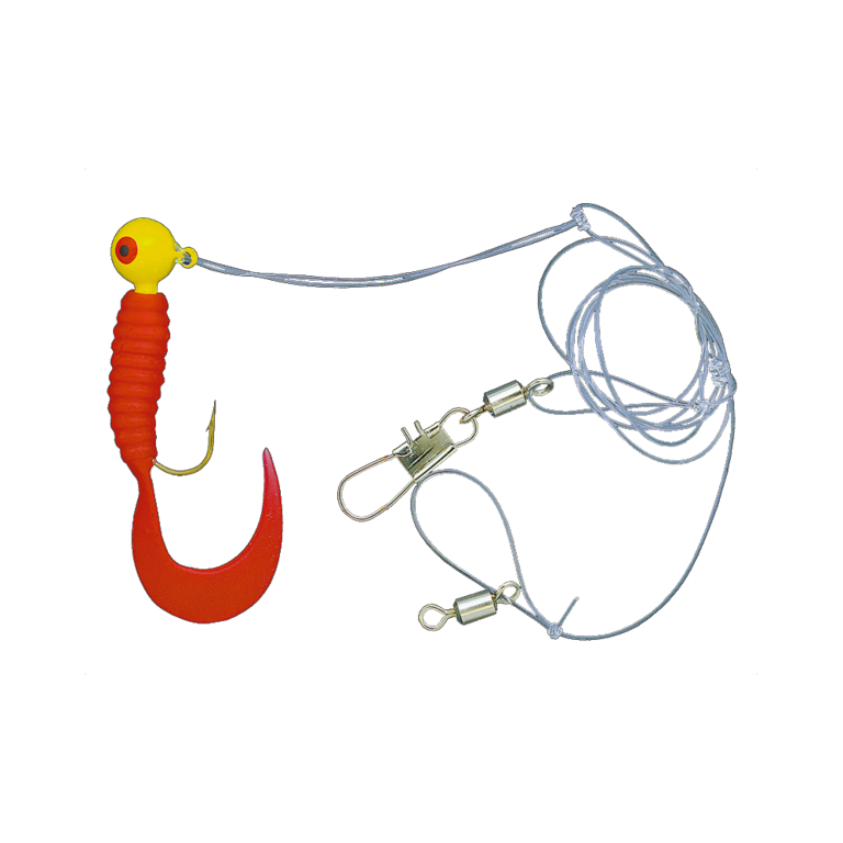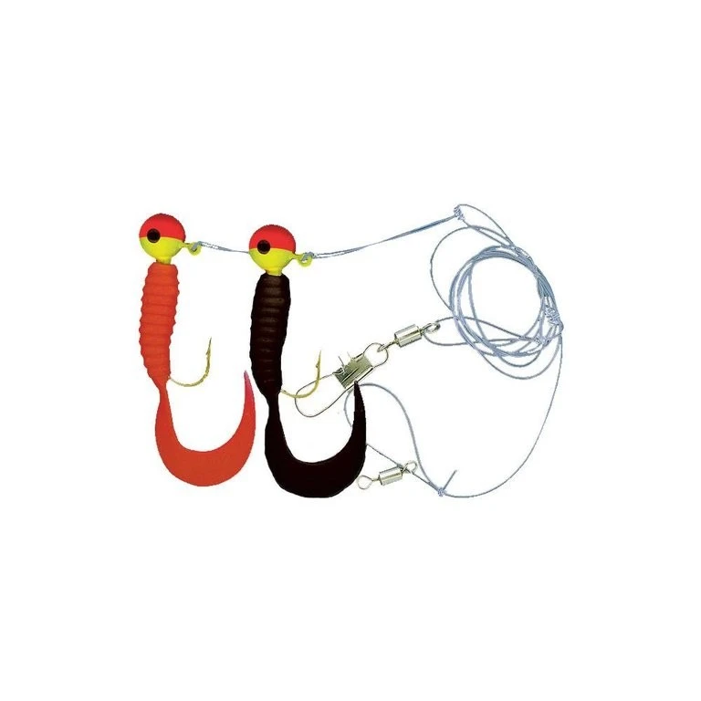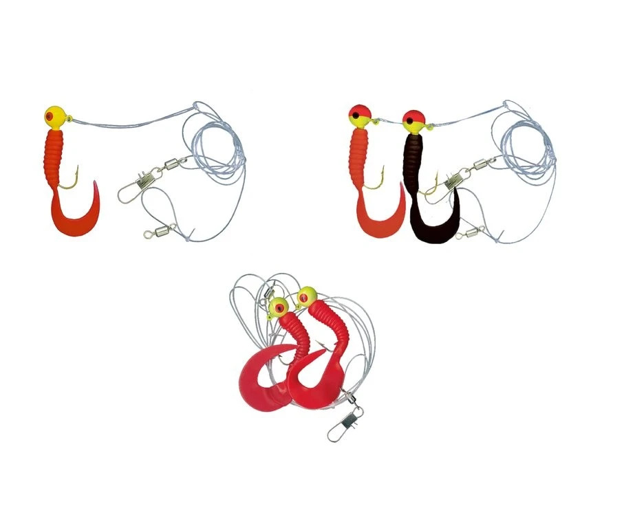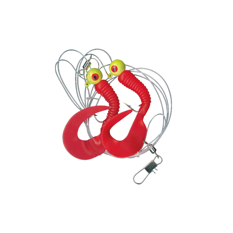 Dieses Twister-System gibt es in drei Farbvarianten, eine mit Einzeltwister und zwei mit Doppeltwister. Die Hakengröße ist 2/0,welche an einer 0,60mm starken Hauptschnur montiert sind.