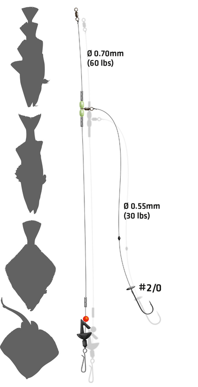 Dieses Brandungsvorfach besitzt einen Haken in der Größe 2/0. Die Hauptschnur hat eine Stärke von 0,70mm (60lbs) und die Vorfachschnur von 0,55mm (30lbs). Ein ideales Vorfach für weite Würfe auf Dorsch, Rochen, Plattfisch oder Wolfsbarsch. Die Lieferung erfolgt auf einem Aufwickler.